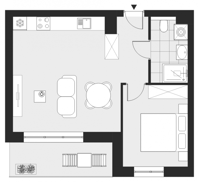 - Charakterystyka mieszkania: 42,08 m², 2 pokoje, 1 łazienka; stan: deweloperski