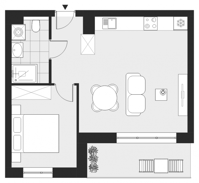 - Charakterystyka mieszkania: 41,54 m², 2 pokoje, 1 łazienka; stan: deweloperski